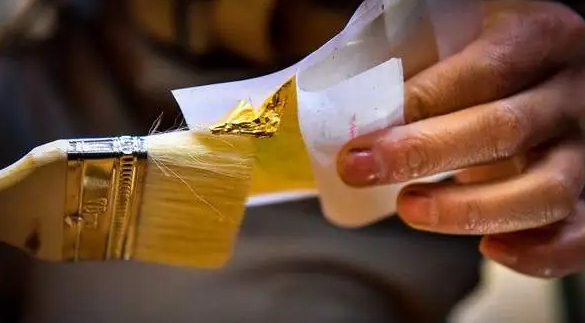 涂胶与贴金 在特定区域均匀涂覆专用胶水,将切割好的金箔精准贴合。